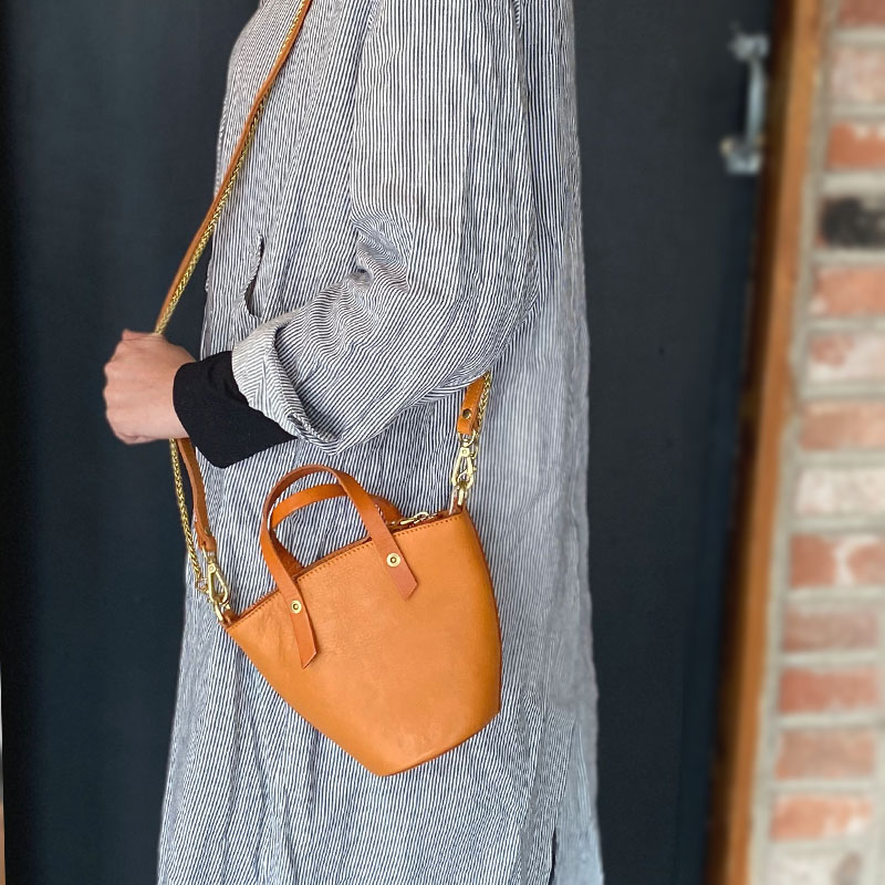 2021春季新款原创设计手工牛皮水桶包小包迷你包双肩带皮带链条带热门设计联盟服务商