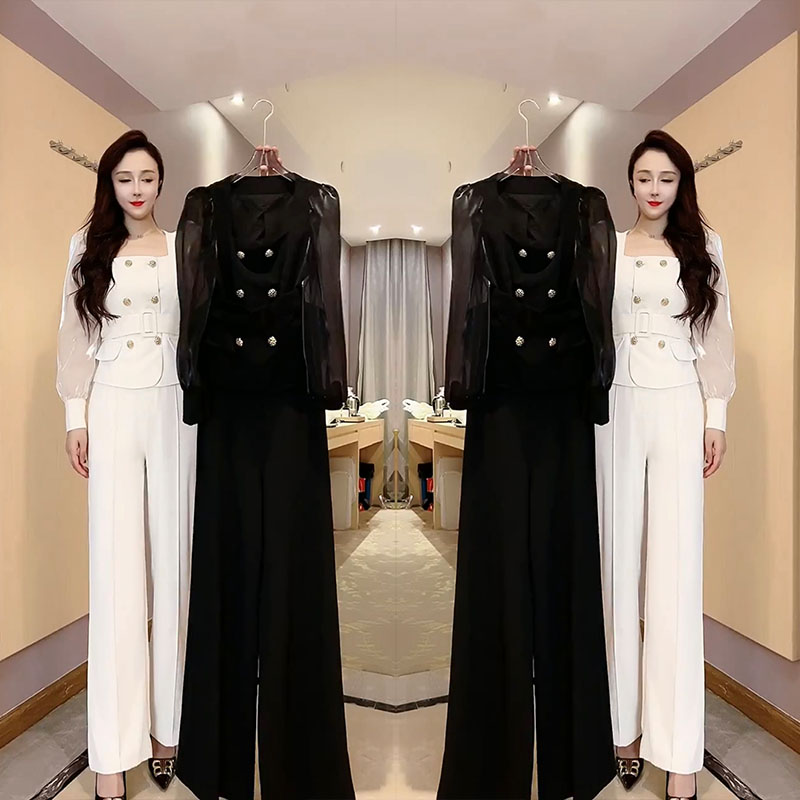 欧货网红款套装女2022秋季新款方领收腰双排扣上衣+垂感阔腿裤热门设计联盟服务商