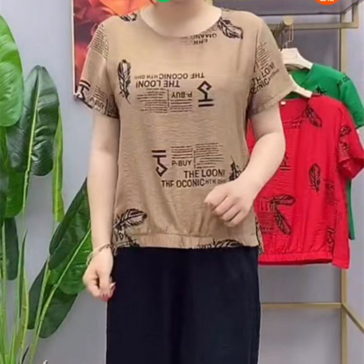 拼接圆领短袖印花T恤2021夏季新款韩版宽松显瘦遮肚设计感上衣女热门设计联盟服务商