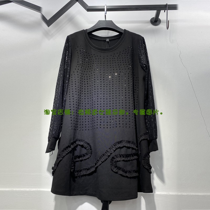 欧洲站2020秋冬新款加大码显瘦蕾丝拼接罗马棉烫钻设计感连衣裙女热门设计联盟服务商