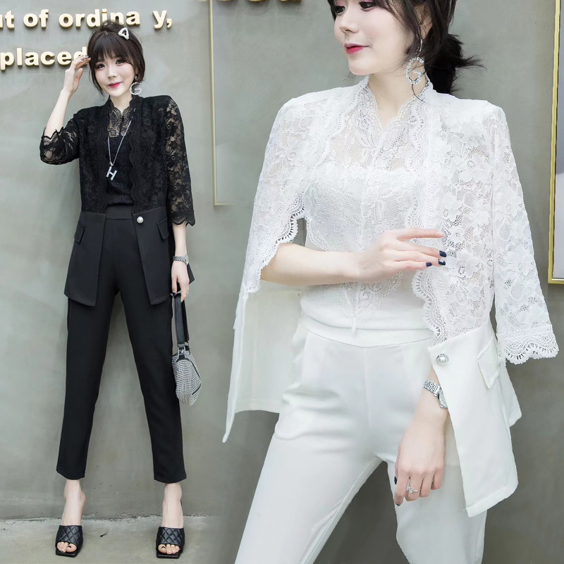 chic网红小西装外套女薄款2020夏季韩版时尚设计感蕾丝西服套装潮热门设计联盟服务商