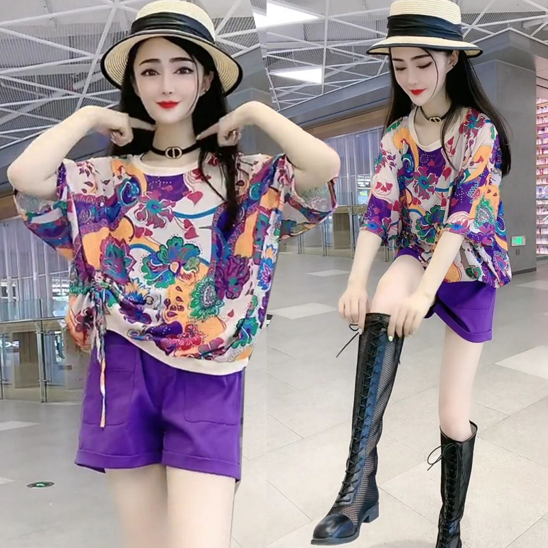 炸街款短裤套装女夏2021新款时尚设计感宽松印花雪纺印花小衫潮热门设计联盟服务商