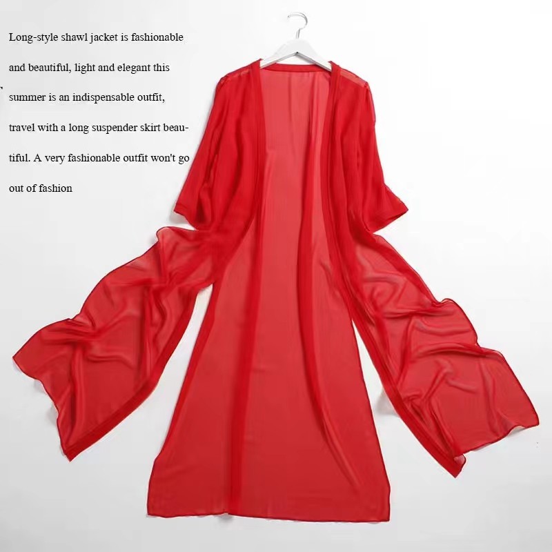 雪纺时尚外披 披肩春夏中长款开叉 毛边设计空调衫女大码 包邮热门设计联盟服务商