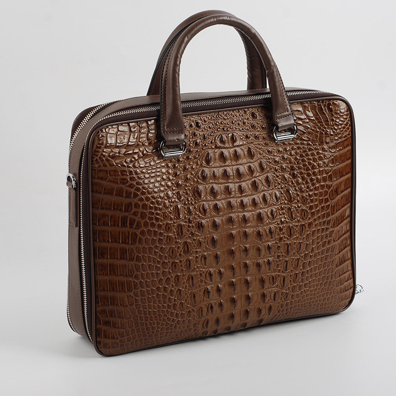 横版商务男士手提大包鳄鱼纹卡其色双隔层14寸电脑包公文包职业包热门设计联盟服务商