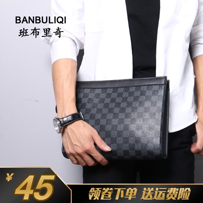 2021新款商务潮男大容量手拿包小方包男款钱包网红手包男士格子包热门设计联盟服务商