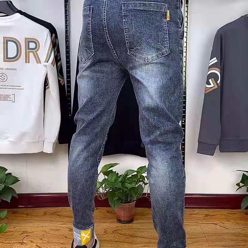 21夏季纯色学生青年男牛仔裤抖音快手网红同款裤脚拼接设计潮百搭热门设计联盟服务商