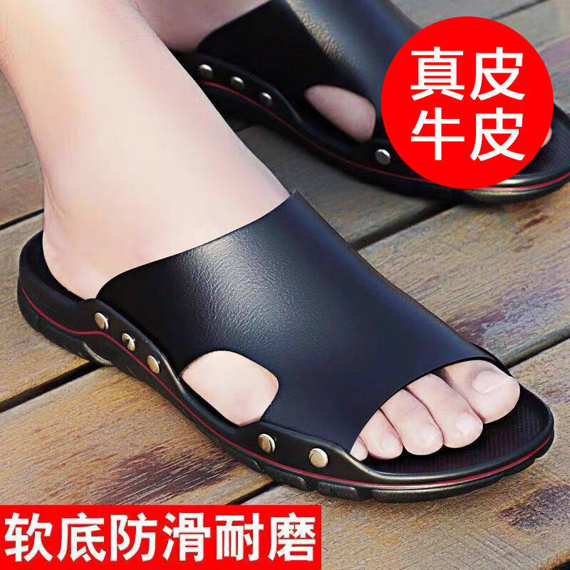 男士室外真皮拖鞋夏防滑外穿韩版一字拖户外牛皮凉拖潮流透气凉鞋热门设计联盟服务商