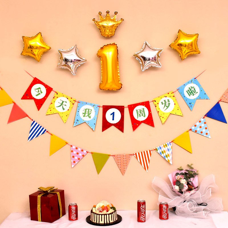 儿童生日气球宝宝一周岁横幅公主房间装饰背景墙生日布置气球套餐热门设计联盟服务商