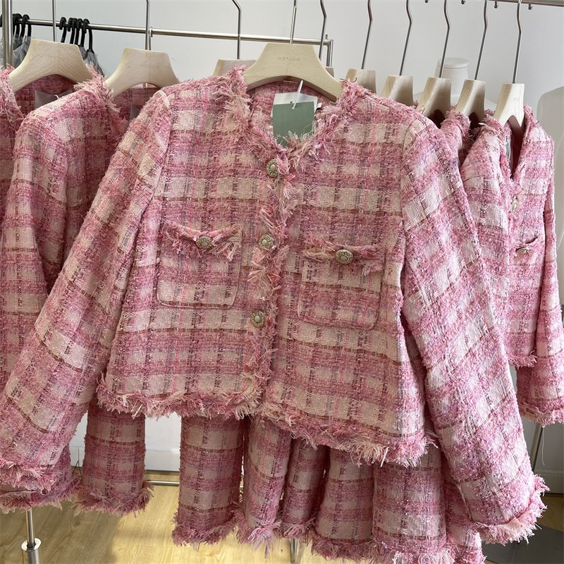 粉色小香风编织外套女2021春y秋季新款韩版气质设计感百搭短款上热门设计联盟服务商