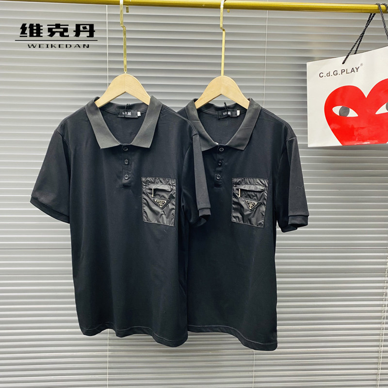 2021夏季新款polo衫男ins前胸口袋翻领短袖T恤刺绣三角标商务休闲热门设计联盟服务商