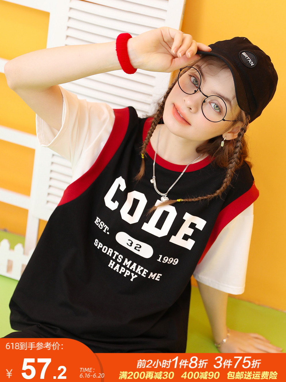 拼接假两件短袖t恤设计感小众t桖女夏2021年新款半袖薄款宽松上衣热门设计联盟服务商