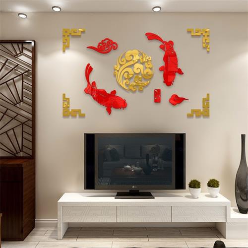 福字鱼字画3d立体亚克力墙贴中国风客H厅玄卧室关背景墙壁装饰。热门设计联盟服务商