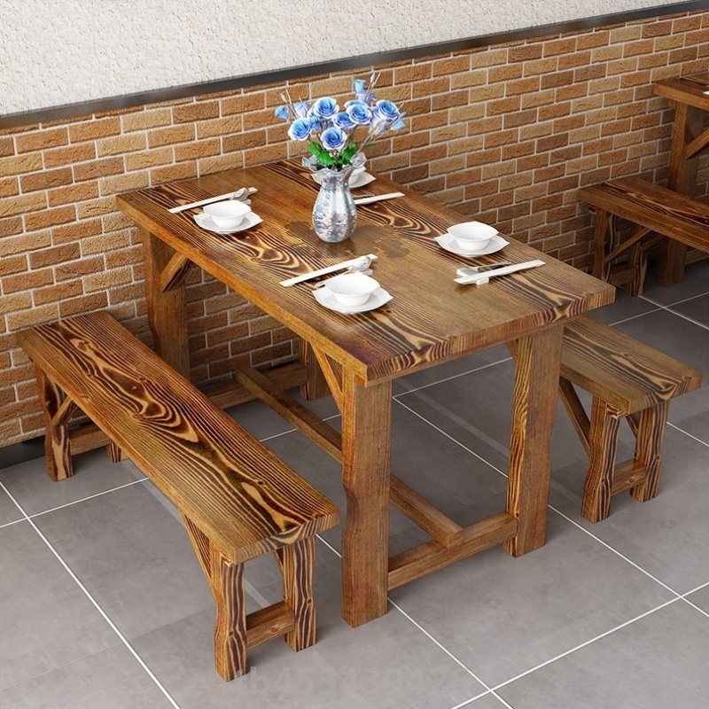 早餐店快餐实木桌椅组合面馆烧烤店饭店商用餐饮店专用碳化长桌子热门设计联盟服务商