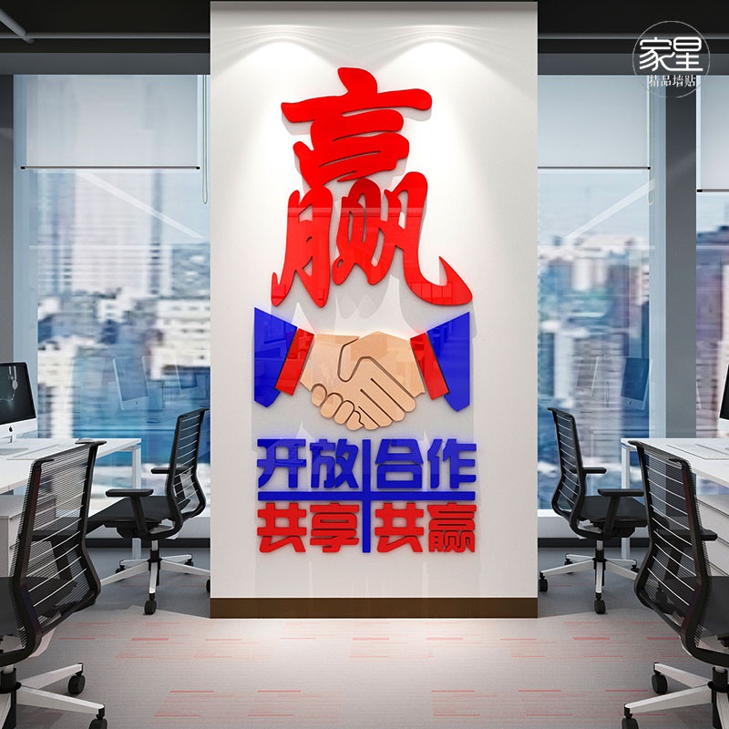 贴纸装饰贴励志合作标语共赢墙面立体会议墙办公室企业文化3d公司热门设计联盟服务商