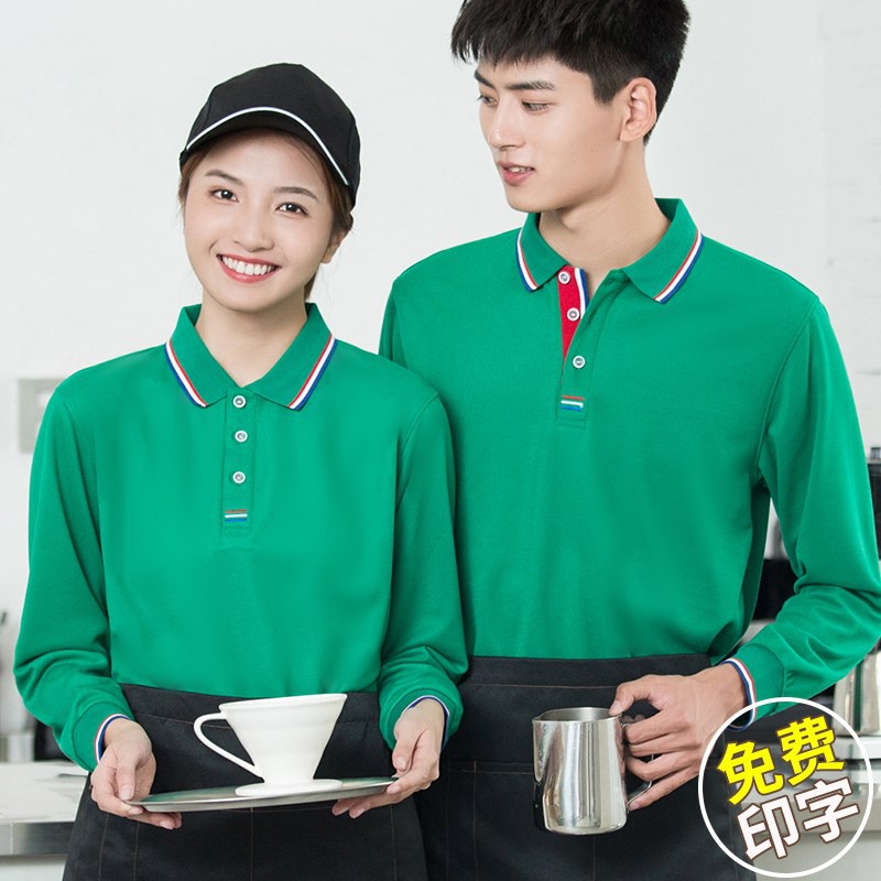 饭店餐饮服务员工作服T恤奶茶店超市绿色主题餐厅火锅店工装定制热门设计联盟服务商