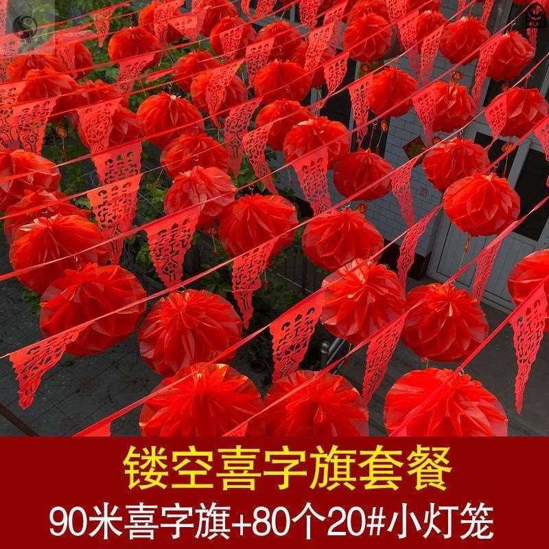 五彩旗喜字旗结婚装饰室外拉花农村小红旗子门口院子场景布置户。热门设计联盟服务商