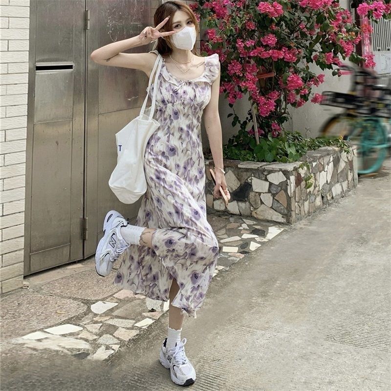 法式甜辣碎花吊带连衣裙女收腰长裙夏季显瘦裙设计感小众气质裙子热门设计联盟服务商