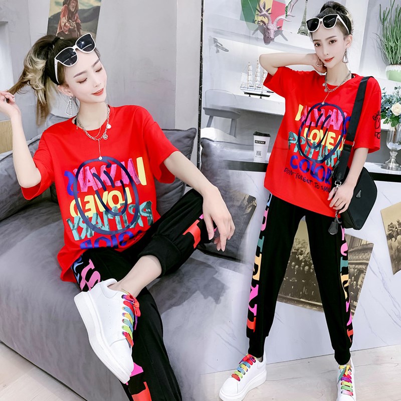 团购鬼步舞2021新款时尚休闲女夏季短袖印花T恤广场舞运动服套装热门设计联盟服务商