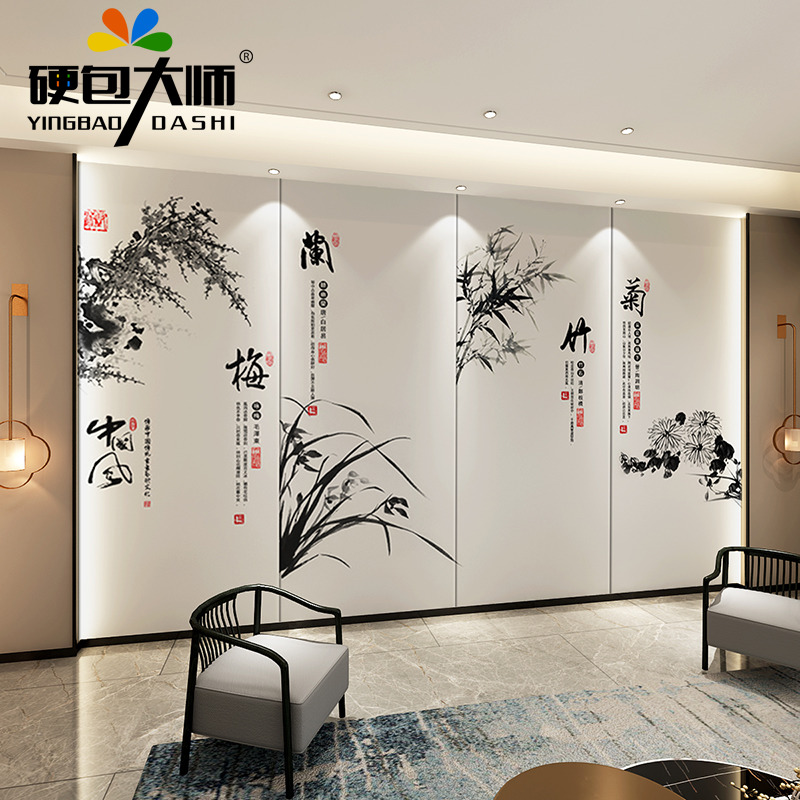 新品新中式水墨竹子壁纸硬包背景墙壁画客厅沙发影视墙布无缝墙纸热门设计联盟服务商