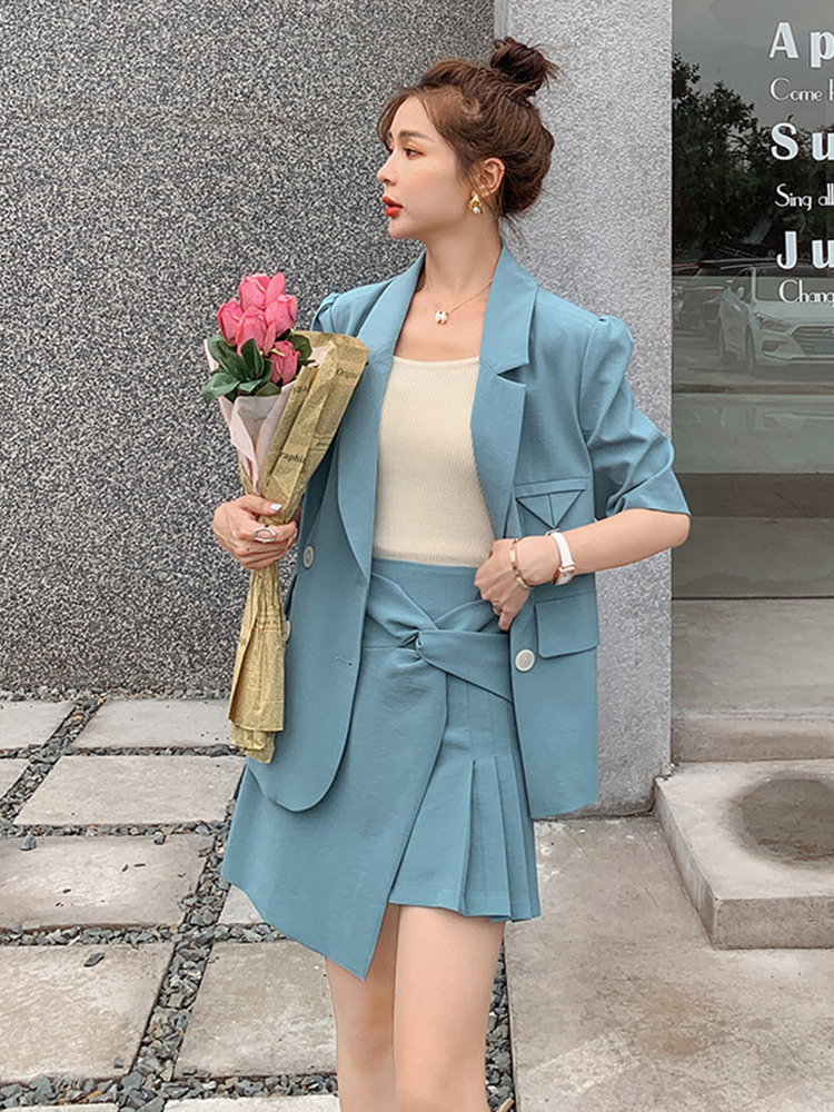 设计感西装外套百褶裙套装女薄款2021新款春秋网红炸街西服两件套热门设计联盟服务商