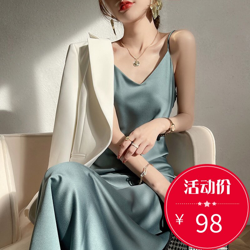三醋酸真丝法式吊带设计感小众连衣裙女夏内搭长裙修身缎面吊带裙热门设计联盟服务商