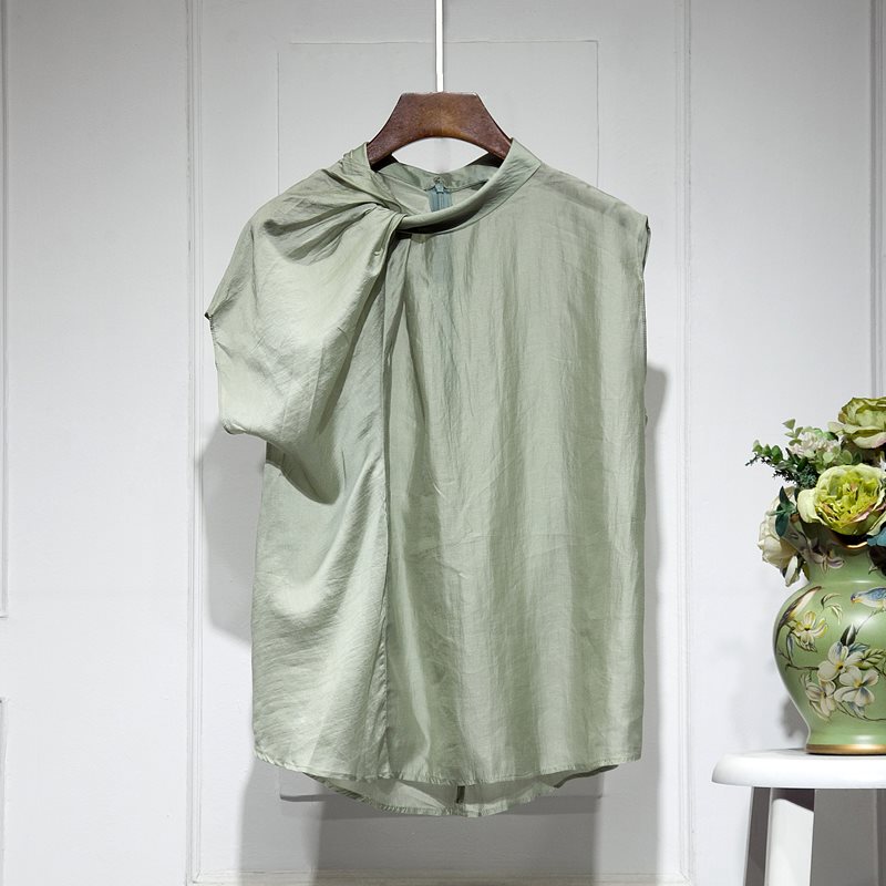 2021春夏新款设计感小众无袖衬衫女洋气通勤气质不规则褶皱上衣热门设计联盟服务商