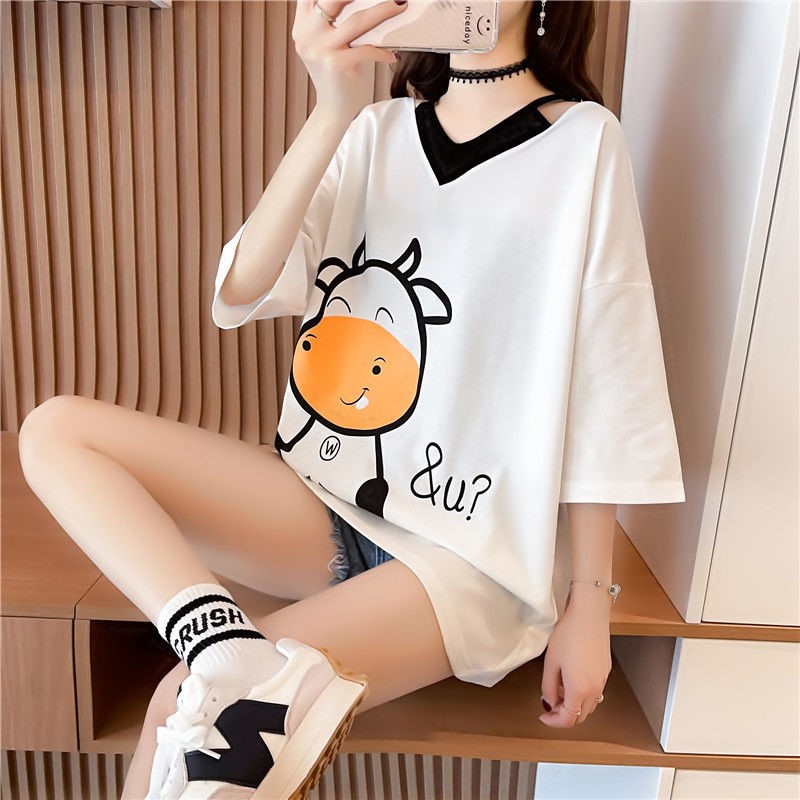 设计感孕妇装短袖上衣假两件t恤韩版宽松拼接时尚款外穿漏锁骨。热门设计联盟服务商