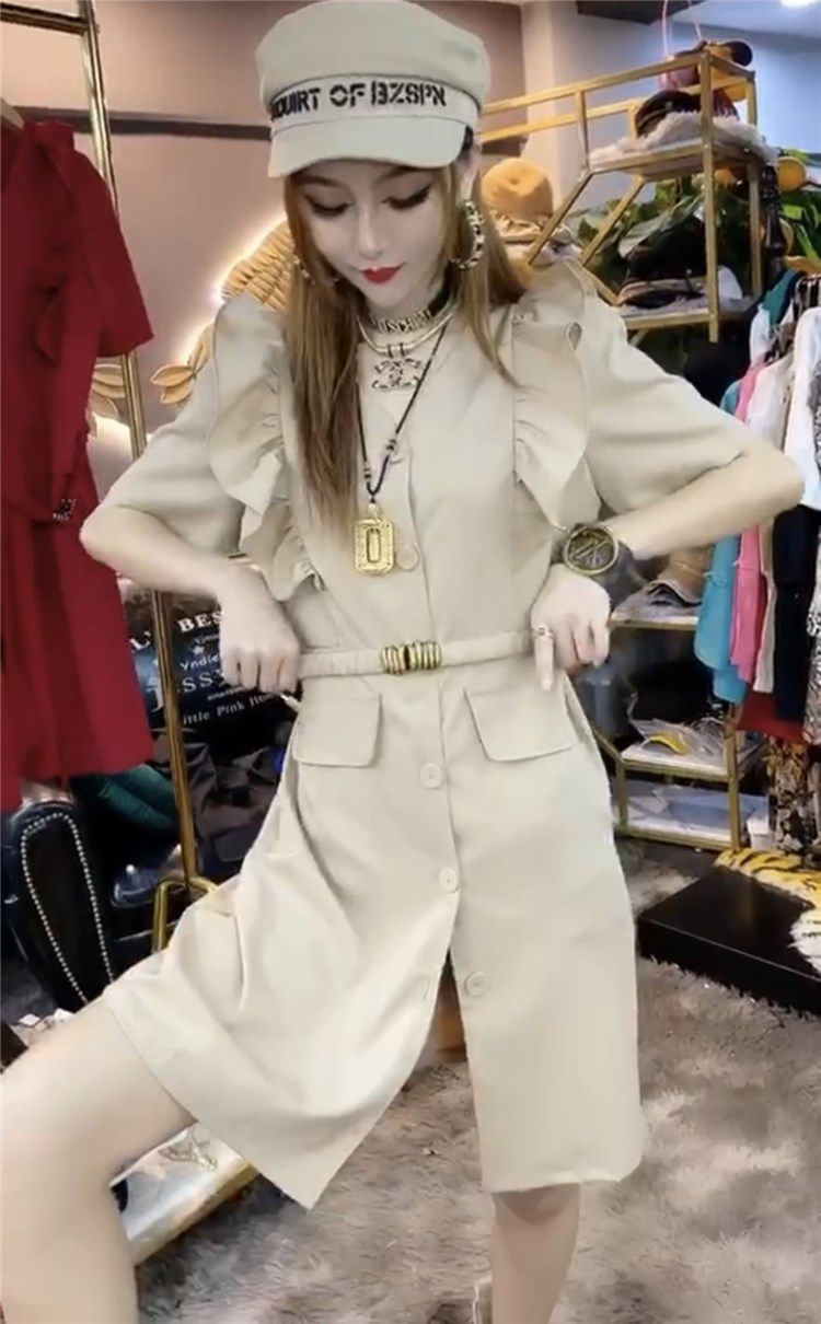 盐系设计感炸街网红款2021夏季新款时尚短袖开叉连衣裙修身女款热门设计联盟服务商