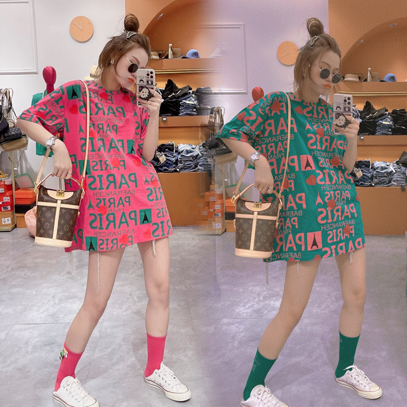 2021夏季新款韩版印花字母中长款t恤女短袖宽松显瘦设计感上衣潮热门设计联盟服务商