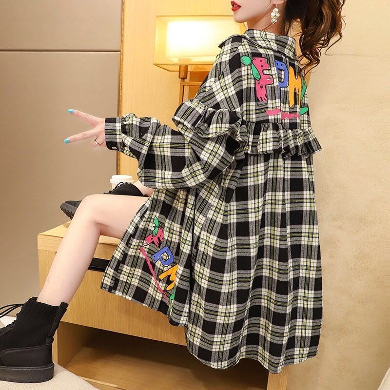 格子衬衫女长袖宽松设计感上衣春秋装2020新款休闲百搭洋气衬衣潮热门设计联盟服务商