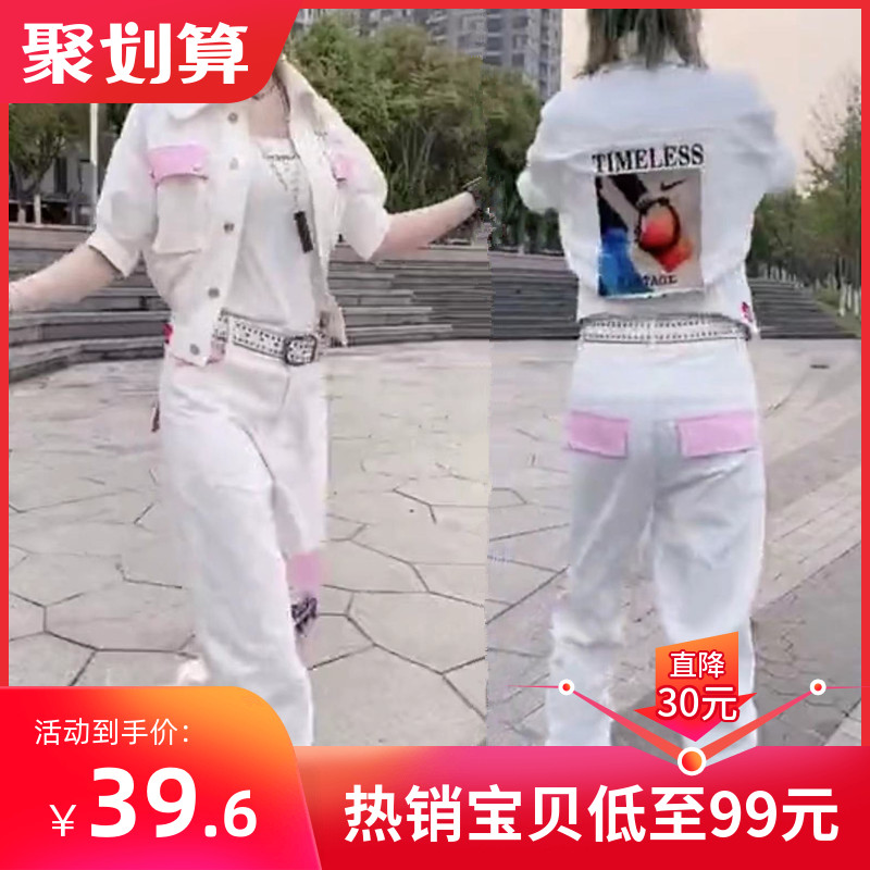 网红立领服饰花色拼接牛仔外套补丁牛仔裤设计感女2021新套装港风热门设计联盟服务商