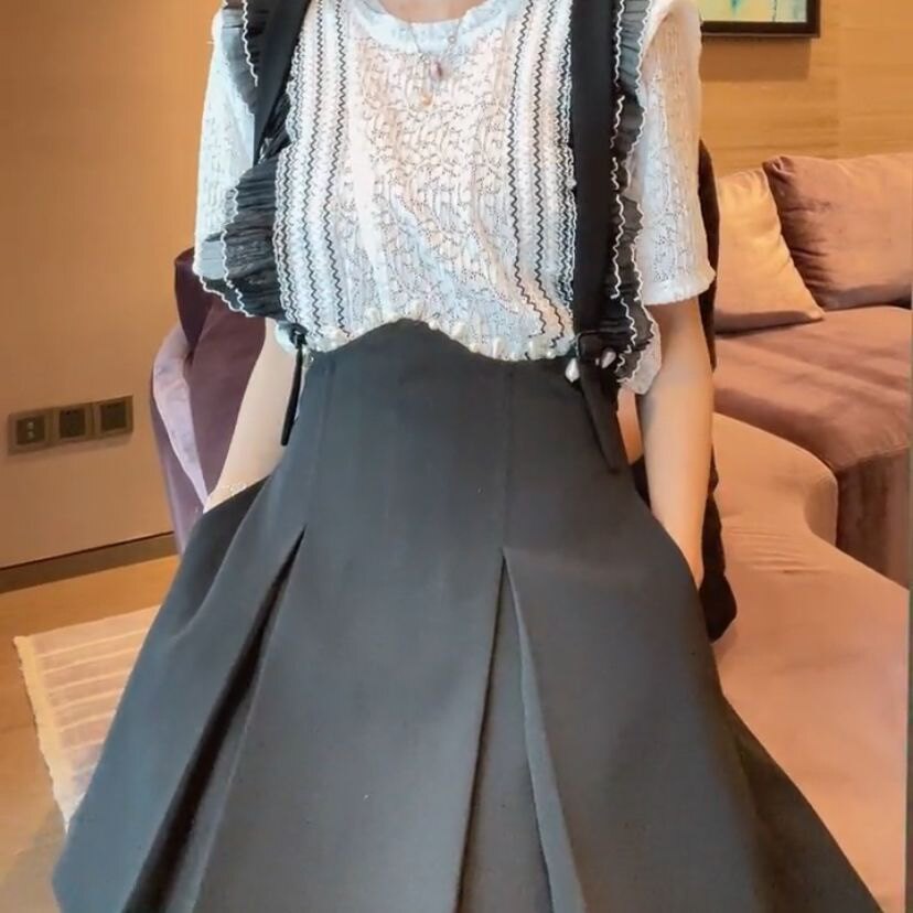 2021春夏秋款不规则松紧腰暗扣亮条设计短款百褶裤裙女A字半身裙热门设计联盟服务商
