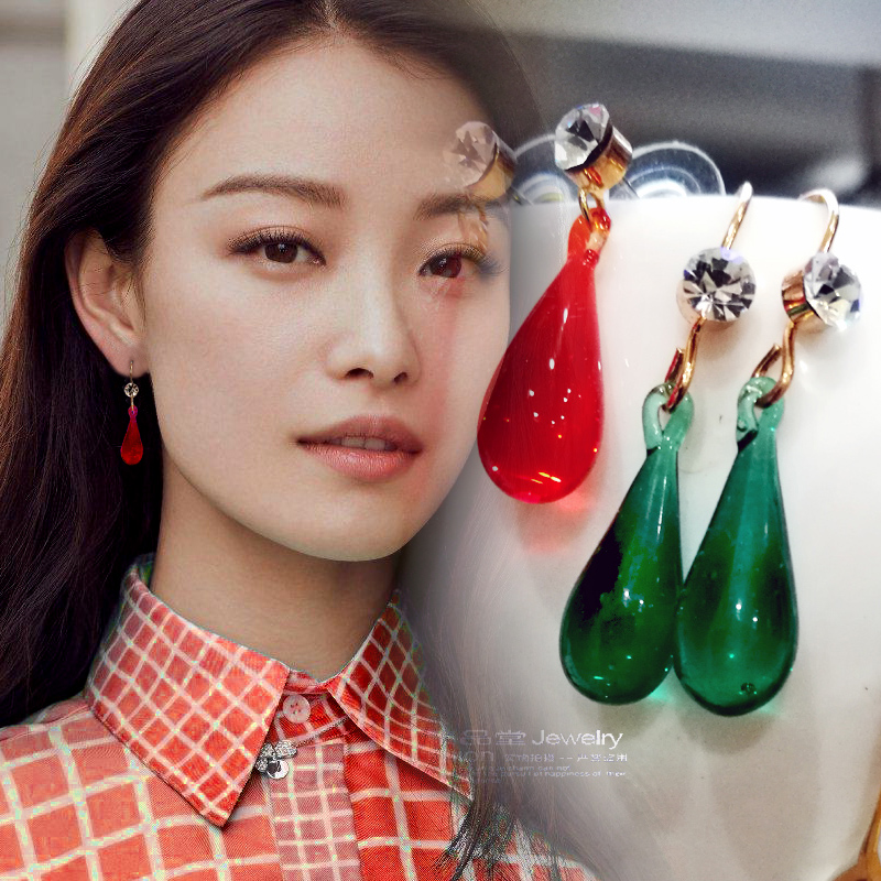 韩国欧美饰品小巧精致影视剧耳环网红主播性感红绿色耳钉耳钩水滴热门设计联盟服务商