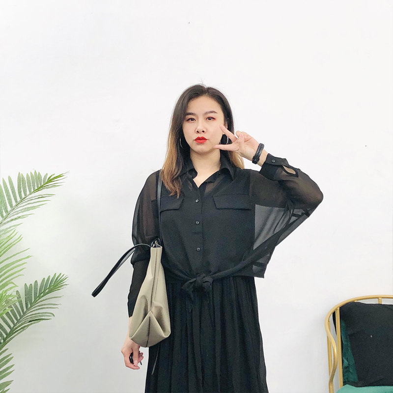 纯色雪纺衬衫女2021春夏新款下摆绑带设计款气质百搭薄透外搭上衣热门设计联盟服务商