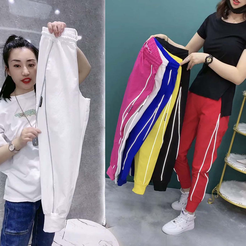 网红款彩色冰丝速干裤女夏季薄款宽松高腰束脚九分哈伦运动裤潮热门设计联盟服务商