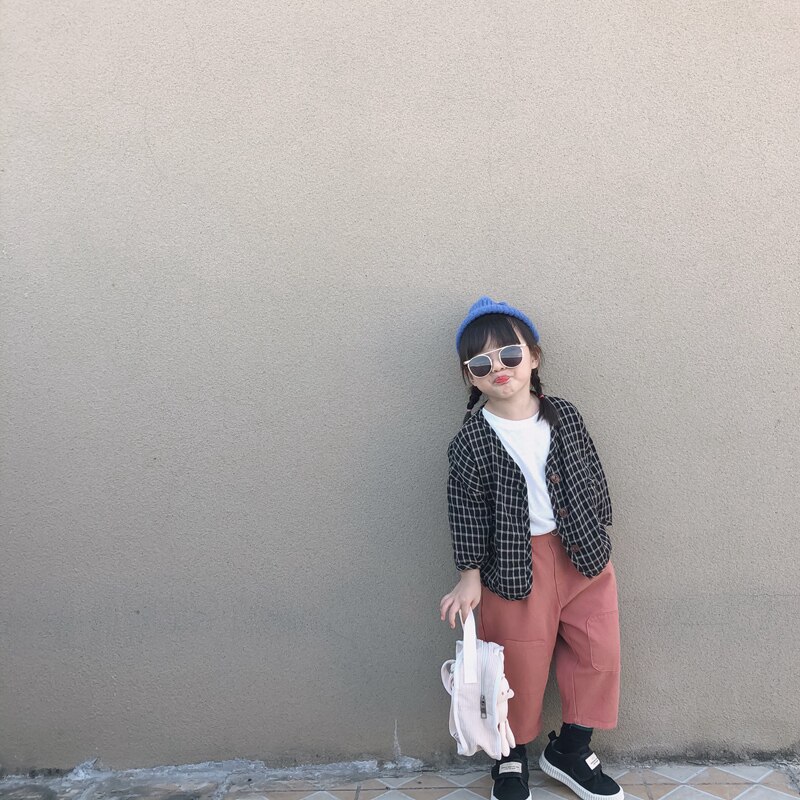 黑调格棉麻开衫~2020秋韩国设计感棉麻长袖开衫宽松蝙蝠袖小外套热门设计联盟服务商