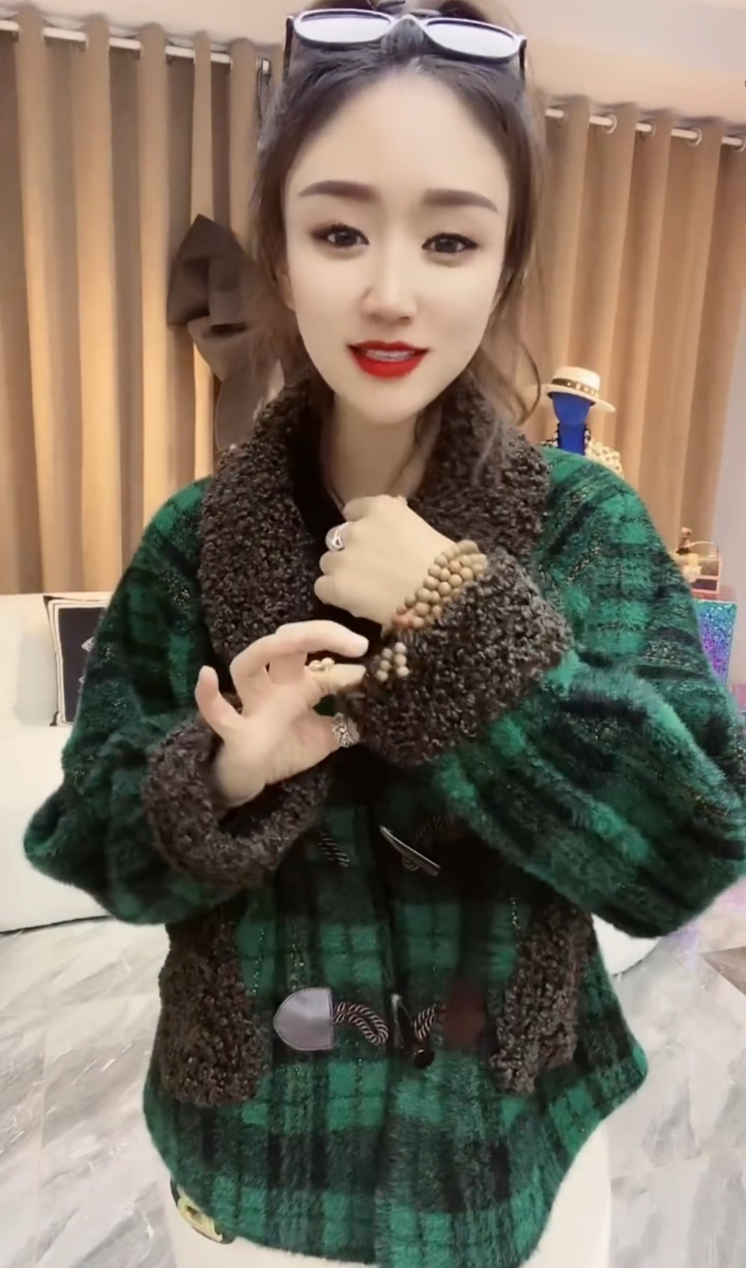 网红2022冬季时尚新款洋气百搭休闲羊羔毛格子毛呢拼接翻领上衣女热门设计联盟服务商
