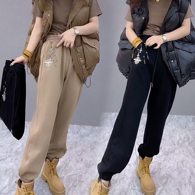 欧洲站冬季新款时尚网红款加厚加绒卫裤女宽松显瘦束脚运动裤潮热门设计联盟服务商