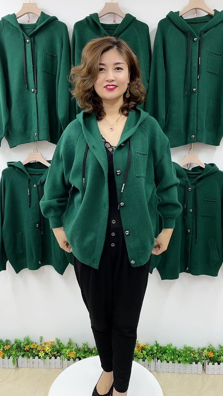 洋气亮扣字母羊毛纱外套女士秋季新款连帽纯色宽松显瘦减龄开衫热门设计联盟服务商