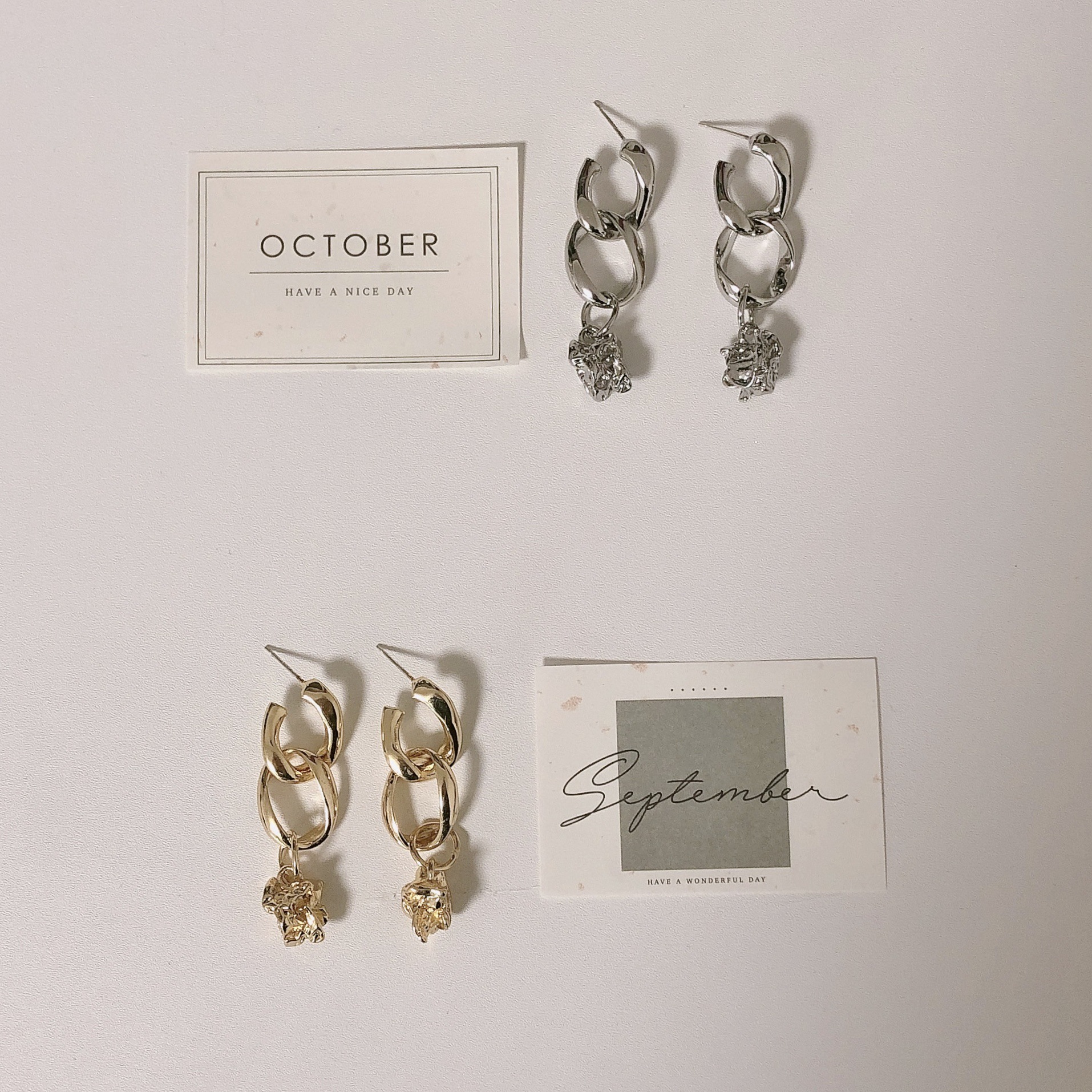 法式时髦感大气金属链条褶皱耳坠夸张设计感冷淡气质耳环耳饰女潮热门设计联盟服务商