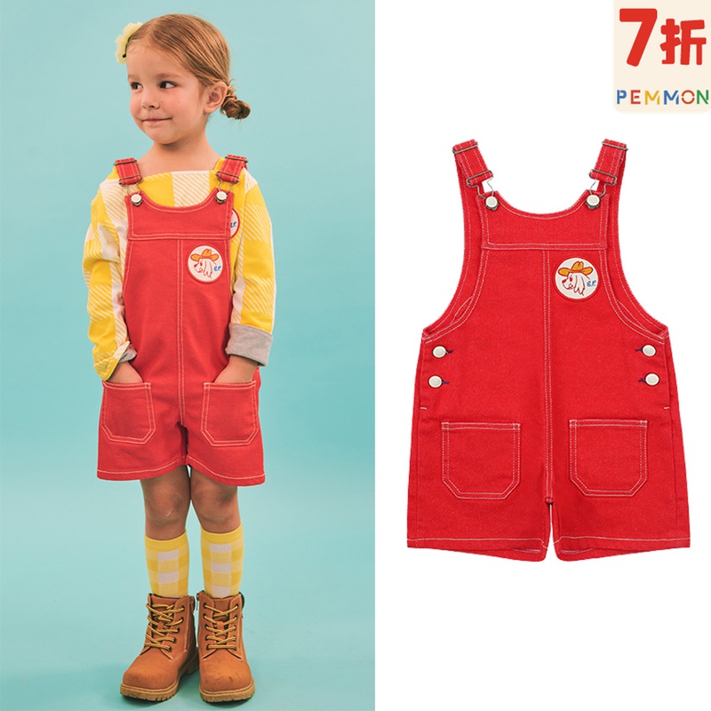 (现货)BEBEDEPINO/贝贝品诺春款儿童红色牛仔背带裤短裤款热门设计联盟服务商