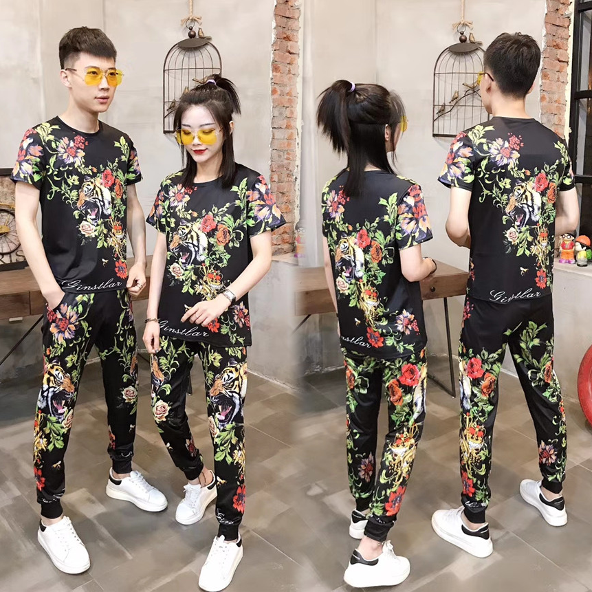 2021年夏新款短袖长裤情侣装男女数码虎头潮流时尚大码个性两件套热门设计联盟服务商