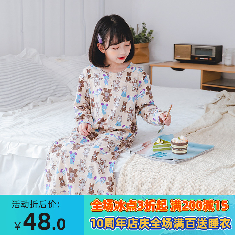 小朋友儿童睡裙女公主春秋长袖纯棉长款卡通卡爱仙女胖童睡衣宽松热门设计联盟服务商