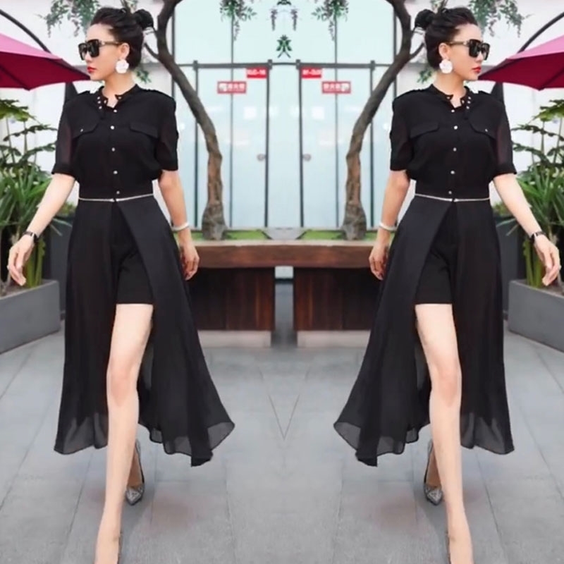 盐系设计感炸街网红款2021夏季新款时尚连体裤网纱假两件裙洋气热门设计联盟服务商
