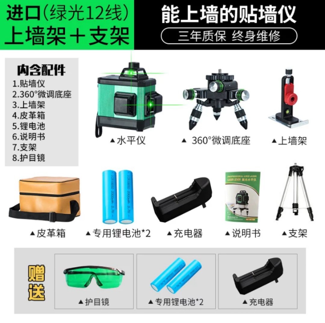 绿光12线水平仪贴墙仪平水仪8线投线仪高精度激光3d德国室外强光热门设计联盟服务商