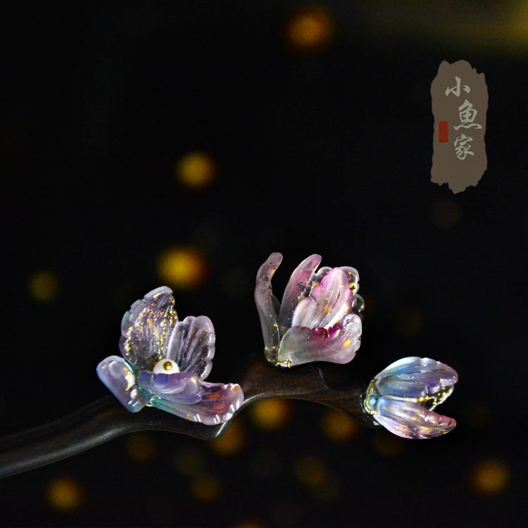小鱼家【木鸢尾】复古风黑檀木簪子乌木发簪头饰发饰原创设计饰品热门设计联盟服务商